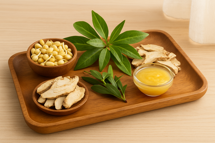 Các thảo dược như Kacip Fatimah, Mầm đậu nành, Đương quy, Ích mẫu, Thục địa, Trinh nữ hoàng cung, Sữa ong chúa được biết đến với khả năng:
