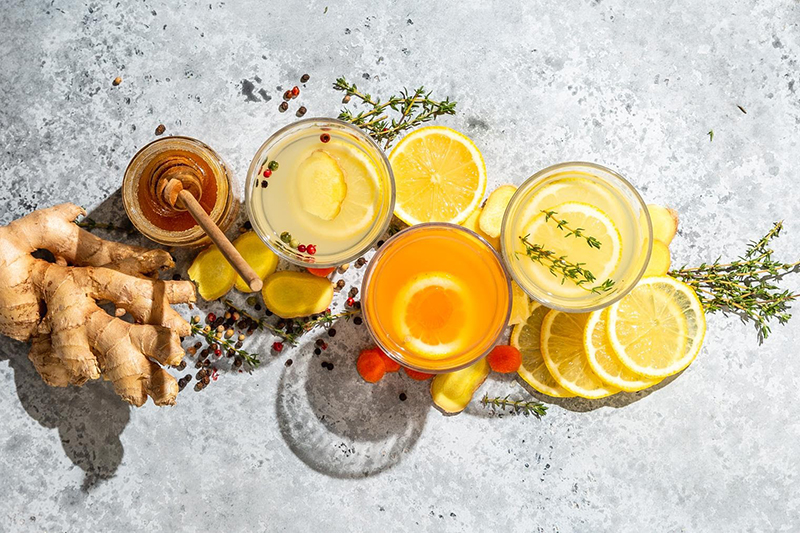 Uống trà gừng, trà chanh mật ong ấm giúp cải thiện tình trạng bệnh
