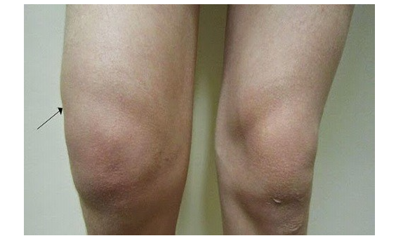 - So sánh hai bên: Đầu gối bị sưng thường to hơn rõ rệt so với bên còn lại, các nếp nhăn quanh xương bánh chè bị mất đi.