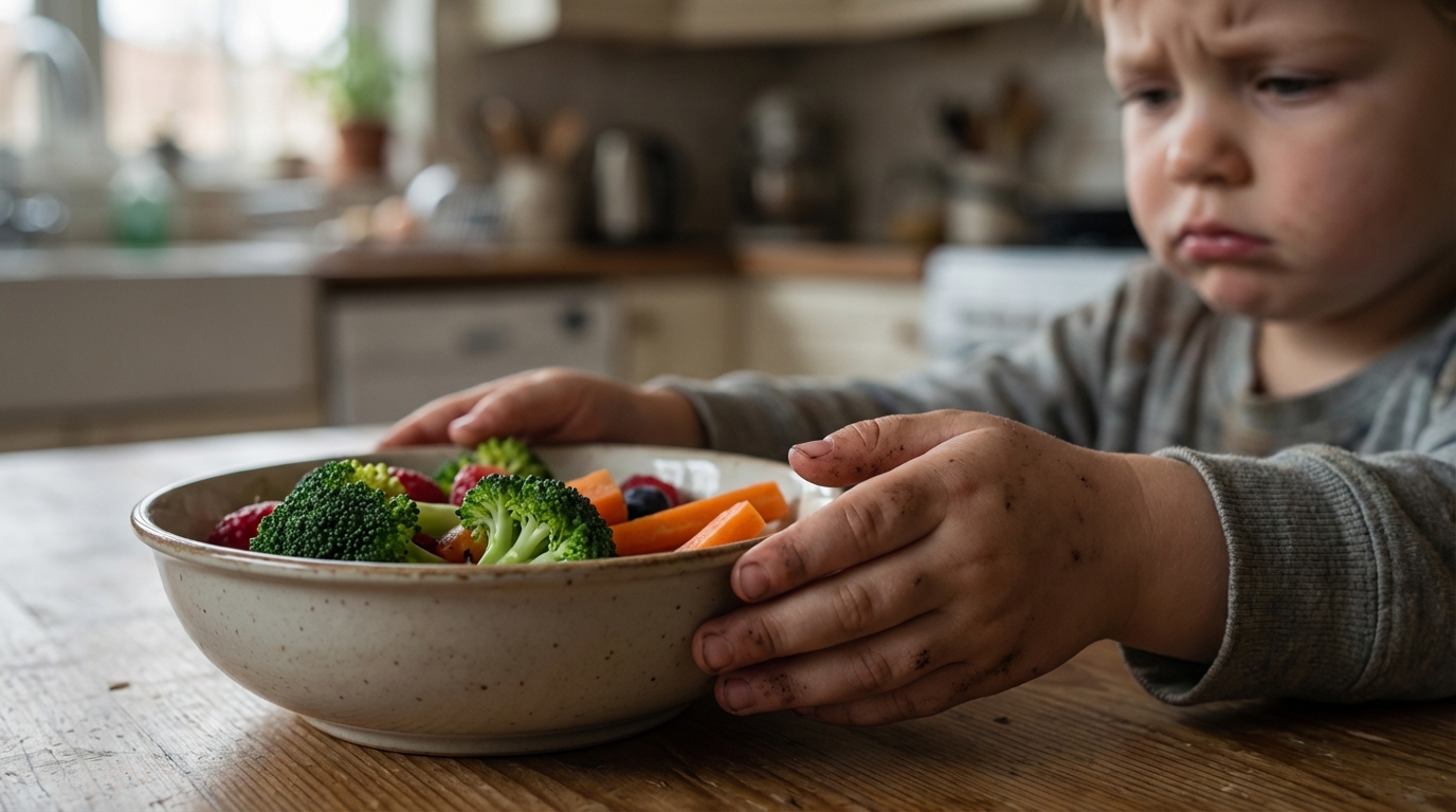 Đầu tiên và rõ nhất chính là sự thay đổi trong thói quen ăn uống: bé đột nhiên ăn ít đi, ngậm thức ăn lâu, quay mặt đi khi thấy đồ ăn, hoặc chỉ ăn một vài món quen thuộc.